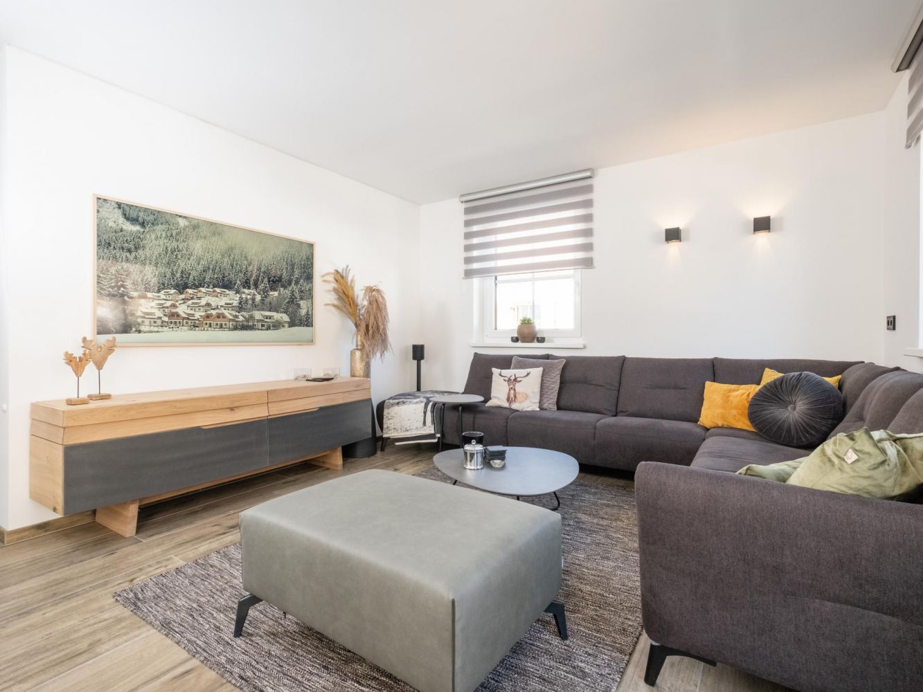 In the basement is a sauna with bath, two showers, sink and hairdryer. You will also find a ski storage room with ski boot dryer, storage room with washer and dryer and a garage with charging point for electric cars.
