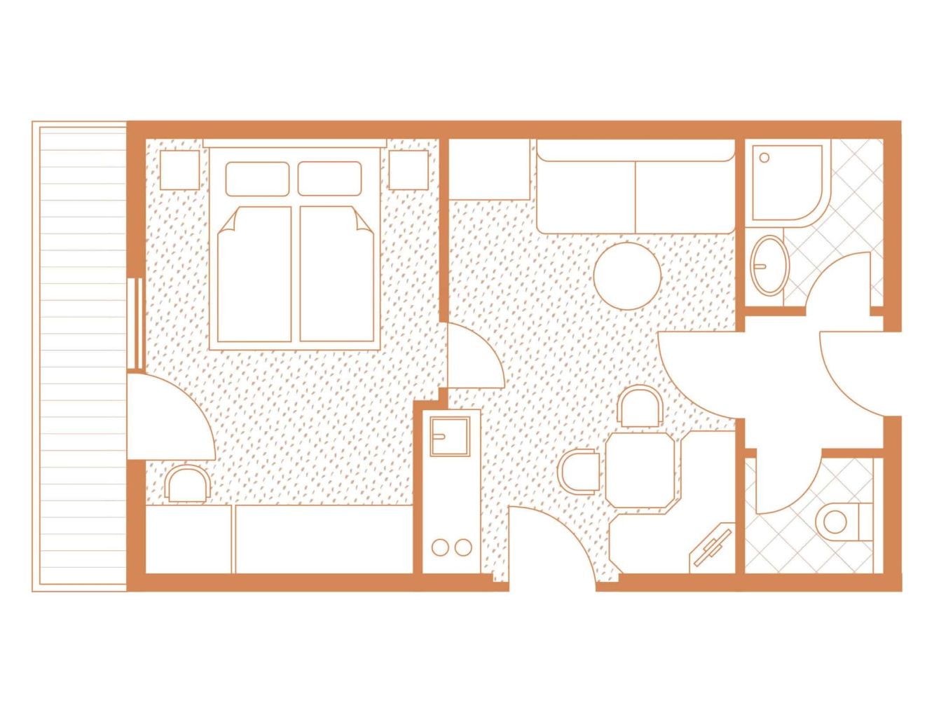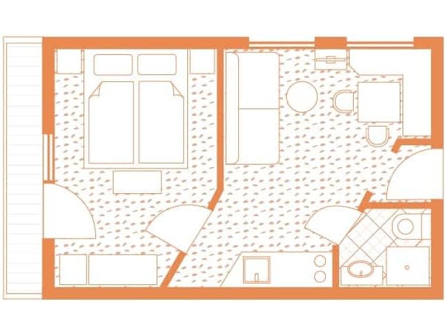 The apartment consists of a living/sleeping area with a double bed and a sofa bed, there is a bathroom with bath/shower and toilet.