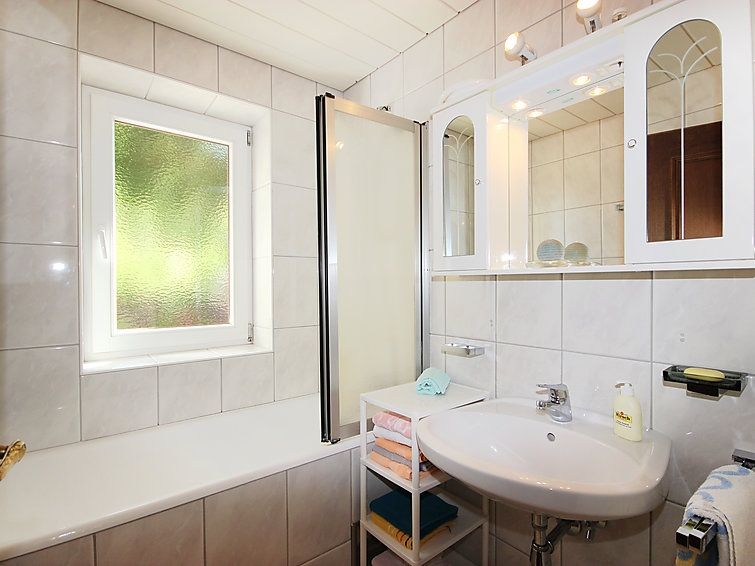 Three bedrooms, one with a double bed, one with two single beds and one with a single bed and a sink. Bathroom with bath or shower. Separate toilet.