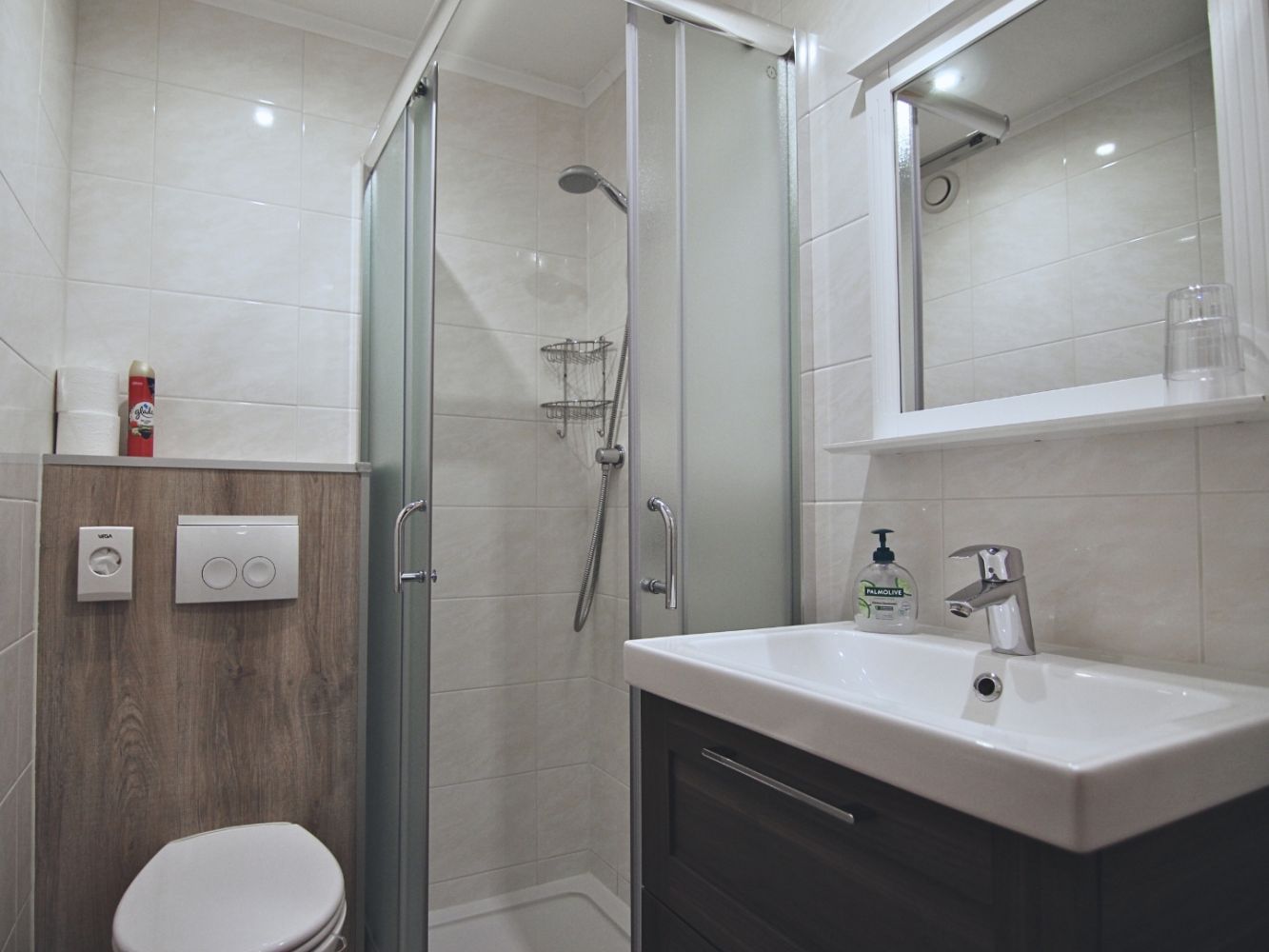 On the third floor are two bedrooms, one with three single beds and en-suite bathroom with shower and toilet. One bedroom with four single beds and en-suite bathroom with shower and toilet.