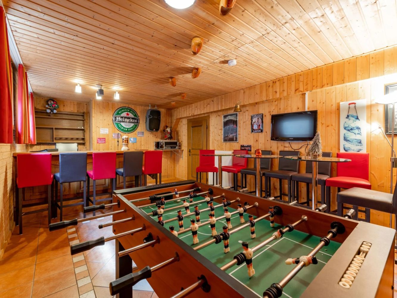 One bedroom with five single beds and television. Sauna room with shower. Recreation room with bar, television and table soccer.