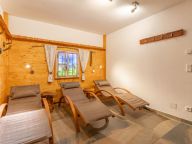 In the basement you will find the wellness area with sauna, shower, toilet and sun loungers. Furthermore, there is a house bar and ski storage.