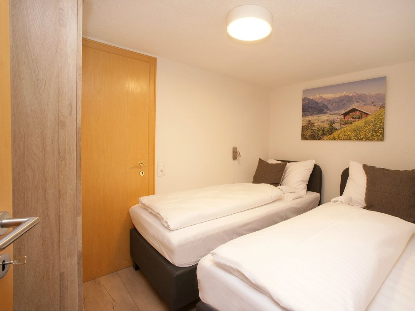 The apartment was good, not exceptional. upon arrival we were immediately told that it was actually a silent apartment (due to quarrel with neighbors) that was not indicated in the ad. the owner lived in the same house, was a nice man so no problems with it but was also not indicated. Some shower facilities had some problems but this was adequately resolved and communication with the administrators via whatsapp was very smooth. location is still just too far from the elevator to walk (on ski boots) and there is no ski bus. in addition, the bedrooms are not ideally decorated and some bedroom have just enough room for the bed, let alone that you want to change there. there is also a bedroom without a door (in a kind of corridor) which is very disturbing for those who lie there. in addition, the 4 person rooms are filled with bunk beds in my idea purely to increase the maximum number of people. the common kitchen and living room in contrast are large enough for all of us and that is a strong plus. the storage room for ski boots contains up to 16 pairs of ski boots what seems to me quite little for a house for 24 people. I would also honestly this house for no more than 20 people bet.