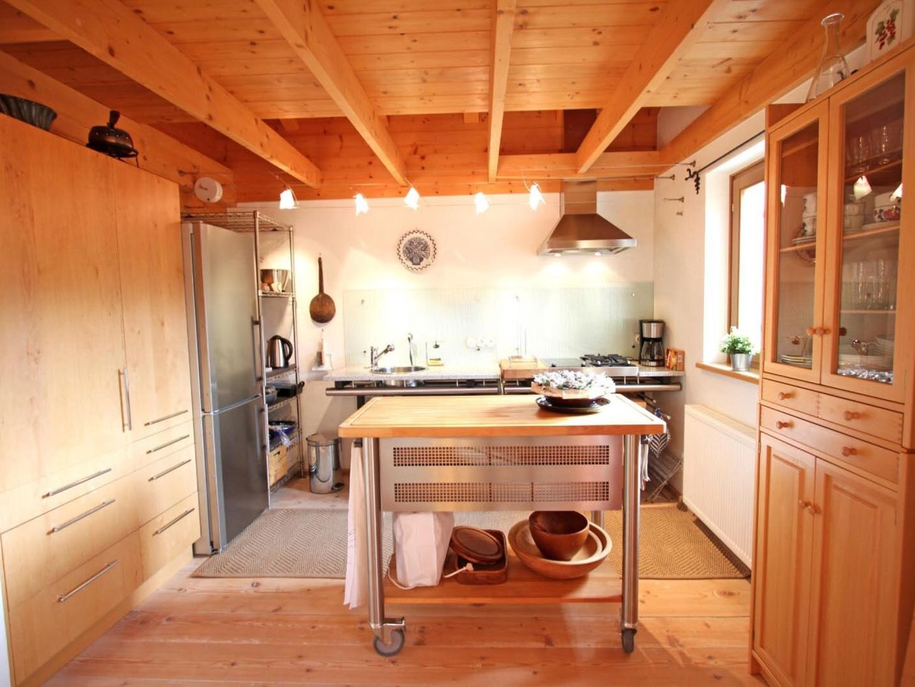 Apartment Hajenius radiates modern cosiness with, among others, light wooden furniture in Alpine style and an industrial kitchen. The living room and dining area are divided by a large traditional stove and also an open staircase after which you come to the charming mezzanine.
