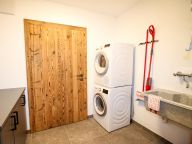 Furthermore, there is a laundry room with washer and dryer and a ski storage room with ski boot dryer.