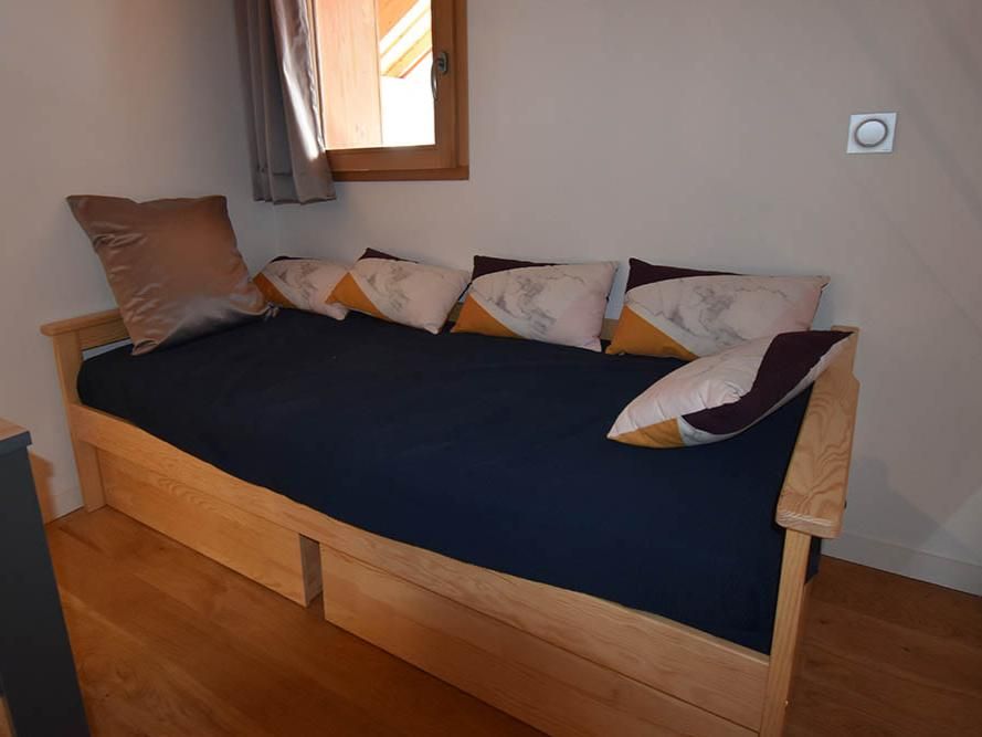 The modern furnished 8-person apartment Les Ameythistes has Wi-Fi and a balcony facing south with a beautiful view of the mountains. There is a shared ski storage with ski lockers and this apartment has one private parking at the residence. Other cars can be parked in the free, public parking garage in the village.