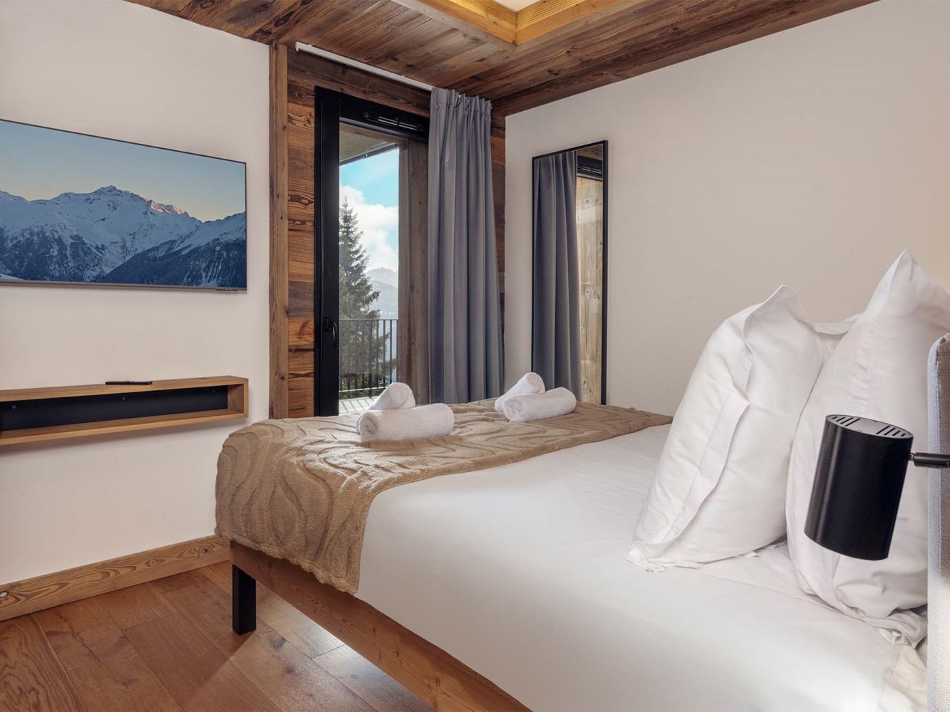 The brand new beautiful and modern résidence L'Orée du Bois consists of five floors where six large apartments have been tastefully decorated in a contemporary style where wood largely predominates, combined with a luxurious feel. The résidence has a convenient and quiet location between the district of l'Orée and the center of La Rosière.