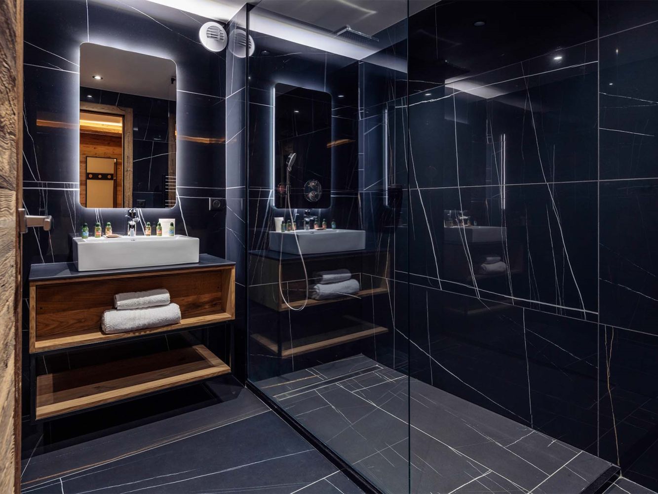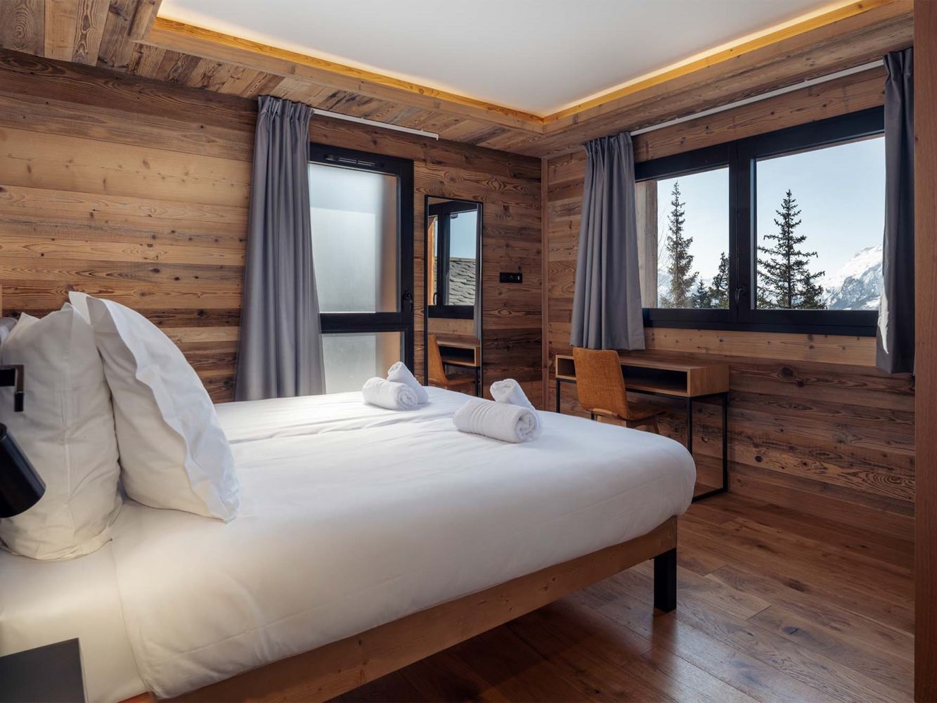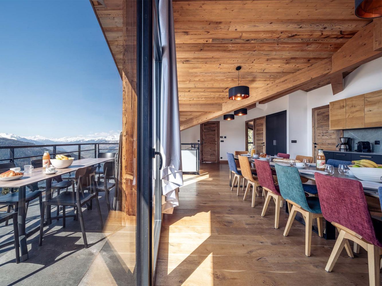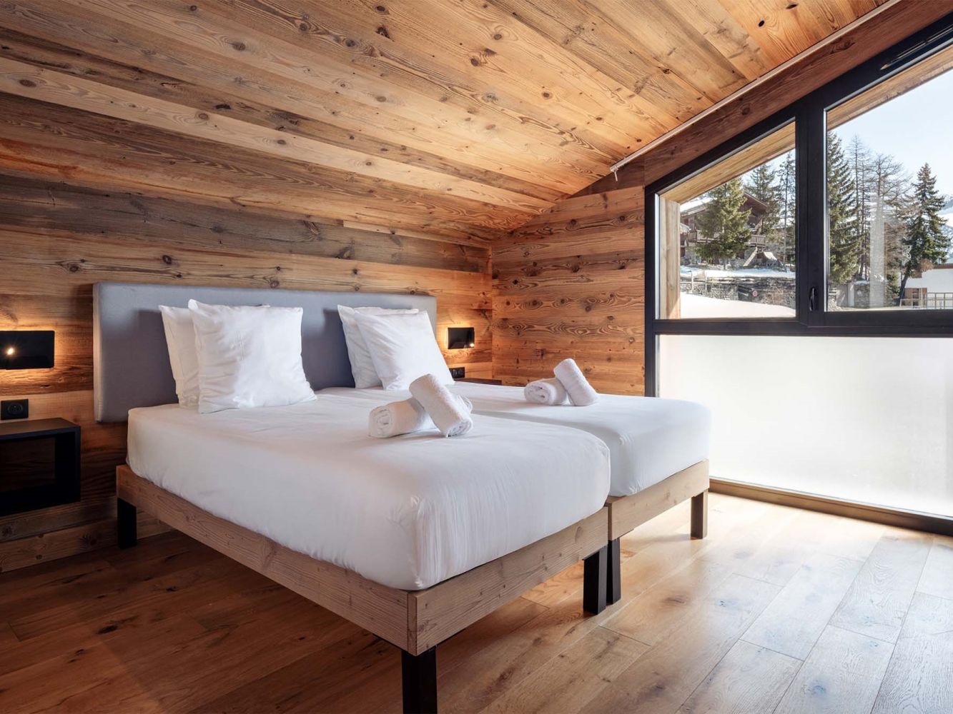 The brand new beautiful and modern résidence L'Orée du Bois consists of five floors where six large apartments have been tastefully decorated in a contemporary style where wood largely predominates, combined with a luxurious feel. The résidence has a convenient and quiet location between the district of l'Orée and the center of La Rosière.