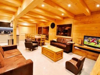 Chalet Vonnes consists of two almost identical chalet halves, each suitable for up to 14 people. These homes can be rented separately or together, in the latter case you have access to the entire chalet which can accommodate groups of up to 28 people. One of the homes has a small private sauna. Both homes have Wi-Fi internet connection, heated ski storage and balconies overlooking the lake! If you rent the entire chalet, you can turn the two living rooms into one large living area, so you can have dinner together with the whole group! Cars can be parked directly at the chalet.