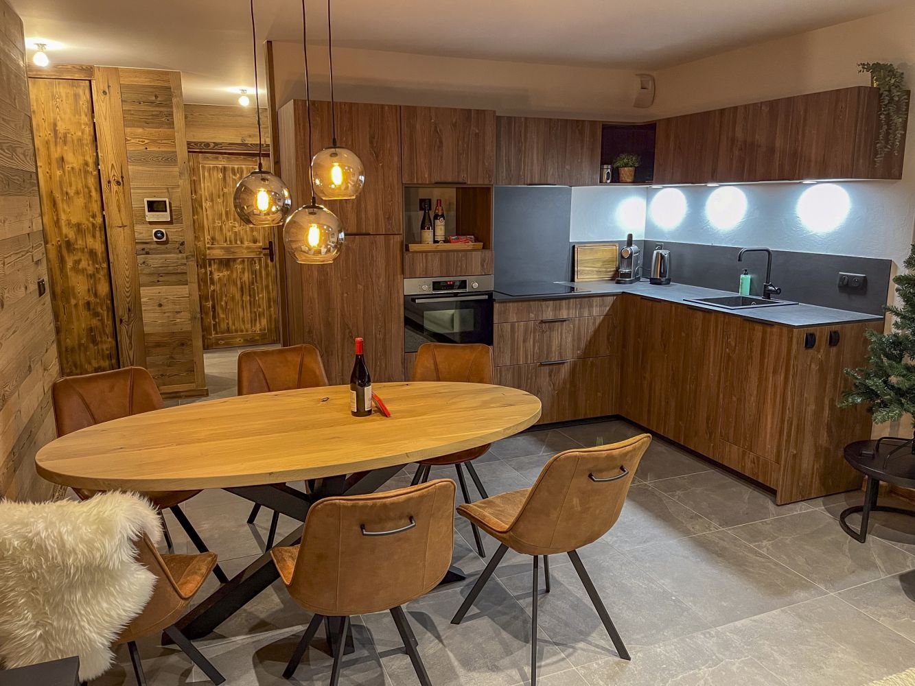 The chalet apartment Hameau du Moulin was recently built (2023) and is located in the attractive mountain village of Saint Sorlin d'Arves, in the large ski area of Les Sybelles. The apartment is 350 meters from the Plan du Moulin Express ski elevator. A free ski bus leaves 150 meters from the apartment, it will take you easily and quickly to the ski elevator. About 250 meters from the apartment you will also find drag elevators, green slopes for beginners and a ski school. Furthermore, in the center you will find a cozy après-ski, several good restaurants, a few supermarkets and stores, a bowling alley and a child care center.