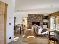 Living room with a sitting area, television, wood stove, dining area for 6 persons and a fully equipped open kitchen with a stove, oven, refrigerator with freezer compartment, dishwasher, coffee maker, water boiler and toaster. From the living room you have access to the large terrace (ca. 60 m²) with whirlpool. Furthermore, the apartment has a free Wi-Fi internet connection and a parking space in the parking garage.