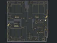 On the first floor you will find three bedrooms, two of which each have two single box-spring beds and en-suite bathroom with shower. The third bedroom has two single box-spring beds and a bunk bed. The third bathroom has an infrared sauna, shower and toilet. On this floor you will also find a washer and dryer.