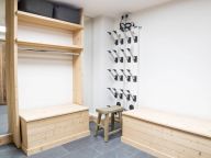 On the first floor (-1) are two bedrooms, one with a double bed (150 x 190) and one with two bunk beds (90 x 190). Furthermore, on this floor there is a bathroom with shower and toilet and a ski storage room with shoe dryers. From the ski room you step outside.