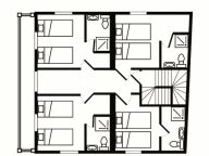 One bedroom with a double bed. Six bedrooms each with two single beds, two of which are under a sloping roof (limited headroom). One bedroom with a single bed (under a sloping roof). All bedrooms have an en-suite bathroom with shower and toilet. Separate toilet.