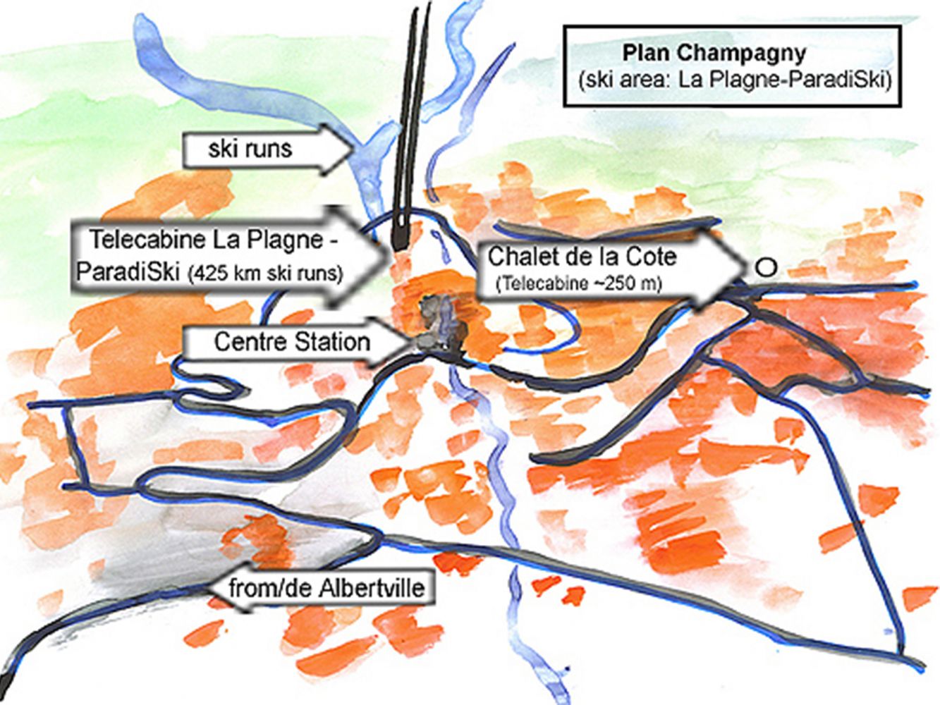 At 250 meters from the chalet is the cabin elevator, which takes only 10 minutes to get to the La Plagne ski area. The center of Champagny with ski rental, cinema, indoor pool, supermarket and all kinds of stores, restaurants and some après-ski venues is also about 250 meters away. Near the chalet (100 meters) is a bakery.