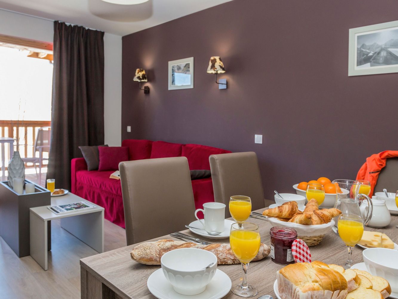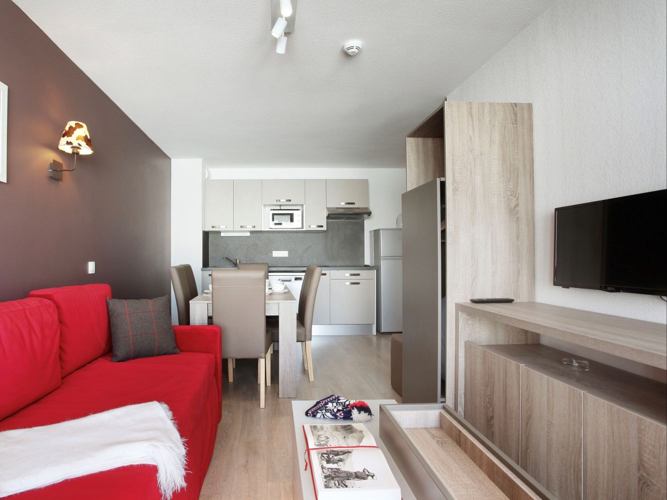 Résidence Front de Neige is built in chalet style and has 144 tastefully decorated apartments for 2 to 6 people. The apartments have a balcony or terrace (except for the studio type) and a Wi-Fi internet connection. The residence has a luxurious Spa, where you can use the pool for free. The whirlpool, hammam, beauty treatments and massages are for a fee. There are also a laundry room and ski lockers available. Outside the residence you'll find free parking spaces, but you can also park your car in the covered parking garage (subject to availability, do not reserve in advance).