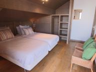 The car-free park "Les Chalets de Bellecôte" consists of spacious, very comfortable detached chalets and is located just above the village center of Vallandry. The chalets are located directly on the blue slopes and have a beautiful view over the valley and on the slopes of Les Coches (ski area La Plagne), which is located across the street.