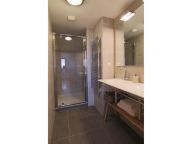 On the ground floor you will find a second small living room with a double sofa bed, kitchenette and dining table. One bedroom with a double bed and en-suite bathroom with shower and toilet. There is also a separate toilet on this floor, the private sauna with shower, washing machine and dryer and a ski storage room with ski boot dryers.
