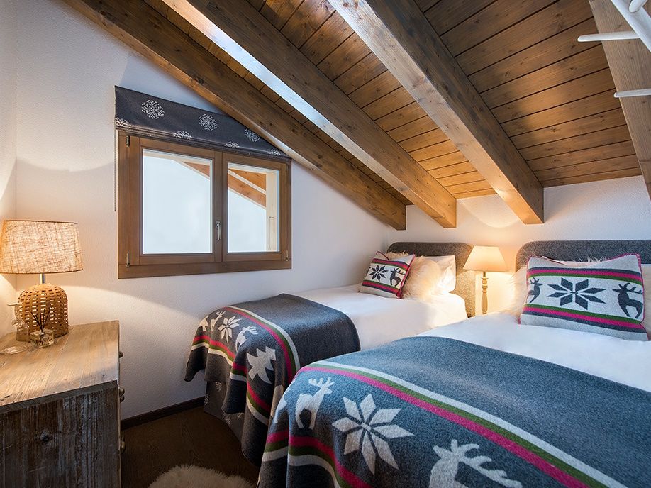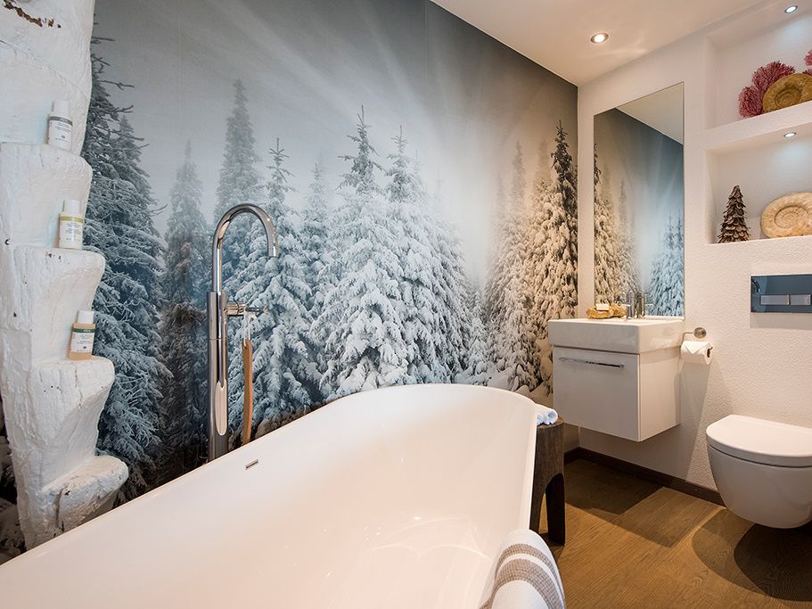 On the second floor you will find three bedrooms in total. One bedroom with large windows with a double bed, en-suite bathroom with bath, shower and toilet and a balcony. Two bedrooms with two single beds each. Separate bathroom with shower and toilet. All bedrooms in the chalet are equipped with an Apple-TV and a hair dryer.